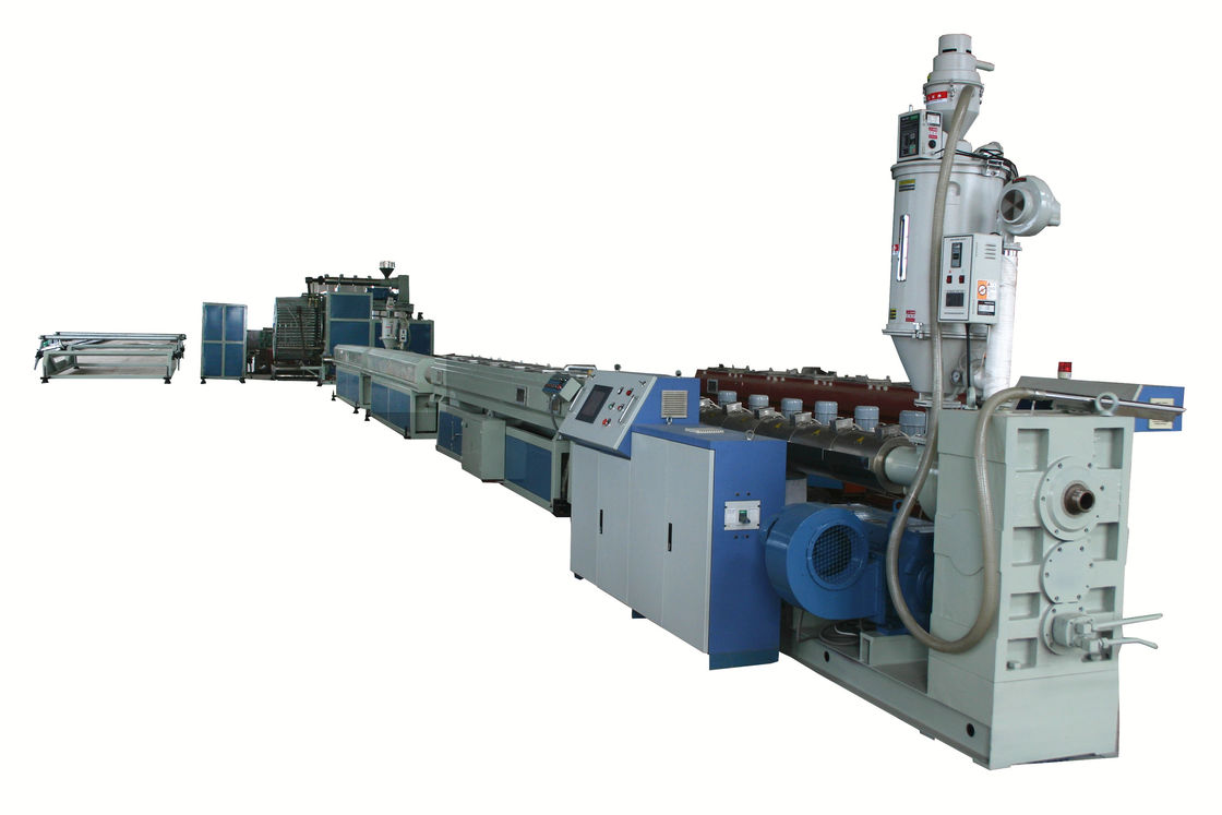 इस पाइप एक्सट्रूज़न लाइन में एक्सट्रूडर, डाई हेड, मोल्ड, सर्पिल फॉर्मिंग मशीन, मोल्ड्स, गोंद एक्सट्रूडर, वैक्यूम कैलिब्रेटिंग सिस्टम, वॉटर स्प्रेइंग टैंक, काटने की मशीन, ओवरट्रर्निंग ब्रैकेट और पूरे लाइन कंट्रोलिंग सिस्टम शामिल हैं।