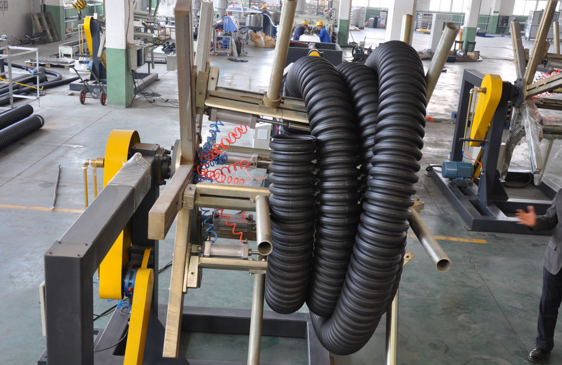 SBG250 (ID90mm - 250 मिमी) दोहरी दीवार नालीदार पाइप लाइन को गोद लेती है दो एकल पेंच extruders, डबल चैनल संरचना, नाइट्राइडिंग पॉलिशिंग उपचार अद्भूत मरा।