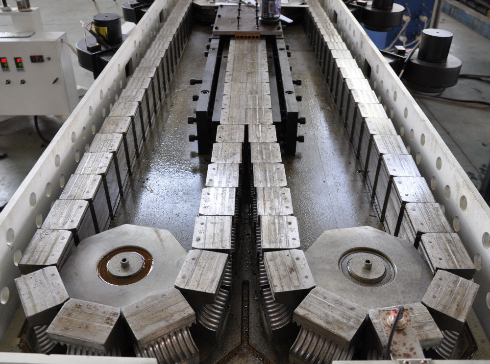 इस साइनल दीवार नालीदार पाइप बाहर निकालना लाइन में मुख्य रूप से बाहर निकालना, नालीदार बनाने की मशीन, डाई सिर और मोल्ड ब्लॉक, शीतलन उपकरण, गिनती मशीन और घुमावदार मशीन शामिल हैं।यहलगातार कई प्रकार के व्यास एकल दीवार नालीदार पाइप का उत्पादन करते हैं।