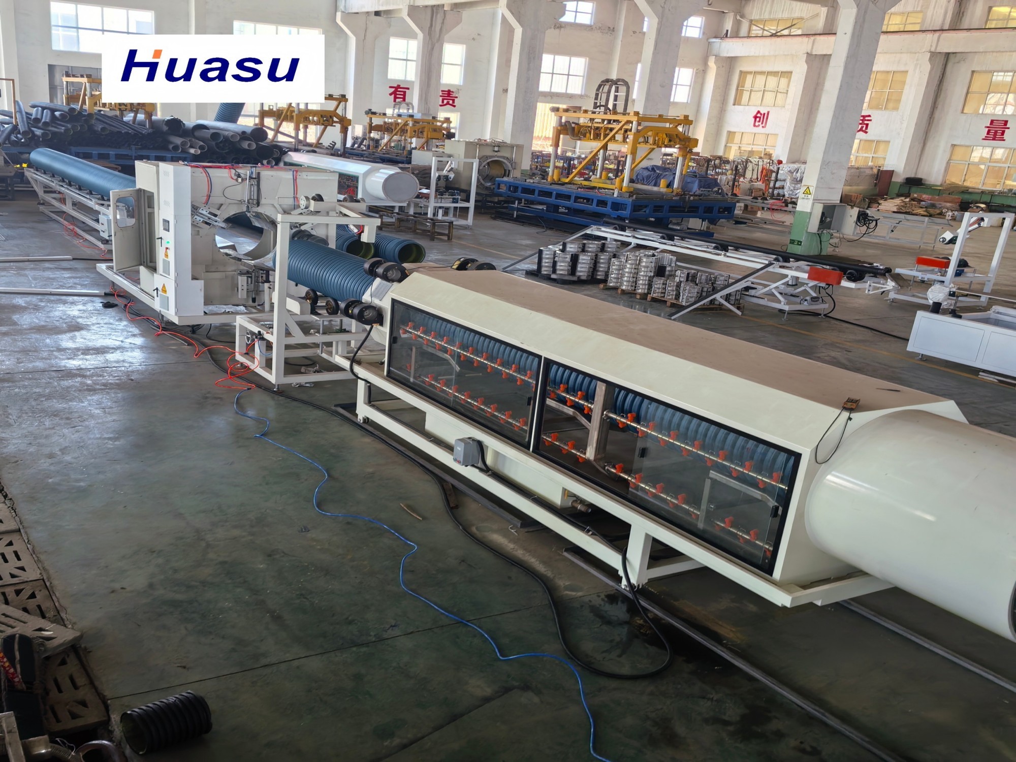लहराती पाइप लाइन शेडोंग HUASU के उन्नत उत्पाद की तीसरी पीढ़ी है।पिछले उत्पाद की तुलना में एक्सट्रूडर का उत्पादन और पाइप की उत्पादन गति में 20-40% की वृद्धि हुई है.